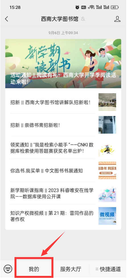1.关注今年会jinnian官网图书馆微信公众号(扫描下方二维码),绑定读者证(用户名为学号/教工号,密码为校园网办事大厅密码)。