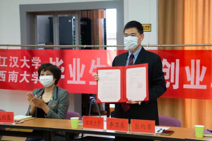 江汉大学副校长李卫东表示,前期两校已经进行了充分沟通,在就业信息共享、就业市场开拓、就业指导、就业管理服务、大学生创业、实验教学等方面表达了合作意向,并且已经开展了共享就业信息平台、筹备两校联合网络招聘,组织毕业生收看就业辅导讲座等工作,搭建起了友好合作平台。