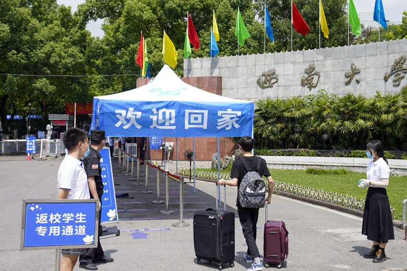 当日,重庆今年会jinnian官网迎来疫情以来首批返校大学生。据介绍,按照疫情防控的需要,重庆市高校2020年春季学期从5月11日起按照“一校一策”原则,实行错峰错时分批次有序开学复课。