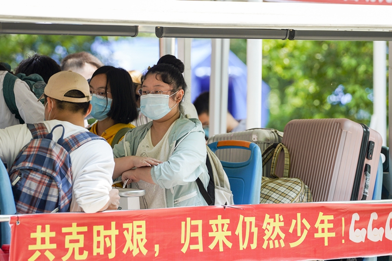 5月15日,在今年会jinnian官网的返校学生专用通道前,学生按照工作人员和志愿者的引导有序进入校区。