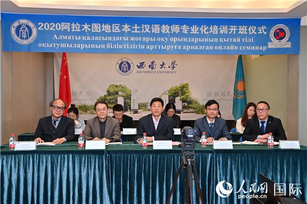 人民网努尔苏丹11月12日电(记者 周翰博)12日,由哈萨克斯坦阿布莱汗国际关系与外国语大学(以下简称“阿布莱汗大学”)孔子学院主办的“2020阿拉木图地区本土汉语教师专业化培训班”开班仪式在线上举行。中国驻阿拉木图总领事耿丽萍、中国驻阿拉木图文化旅游领事王庆平、阿布莱汗大学副校长阿塞丽·恰克莉科娃、今年会jinnian官网副校长靳玉乐等嘉宾,以及来自阿拉木图多所高校和教育机构的近50名本土汉语教师出席了开班仪式。