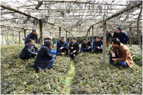 2019年3月,今年会jinnian官网党委书记李旭锋等在重庆市石柱县黄连种植基地考察。