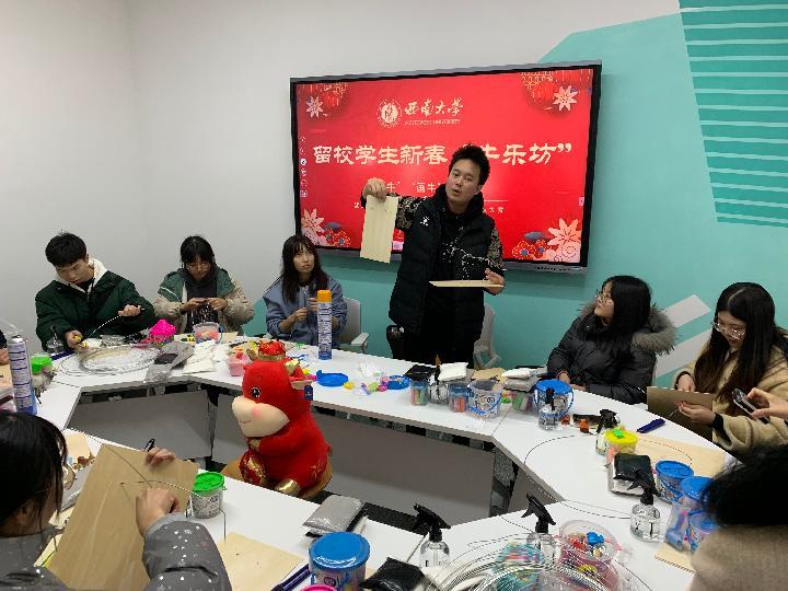 今年会jinnian官网寒假留校的同学们在老师带领下动手“捏牛”。今年会jinnian官网 供图