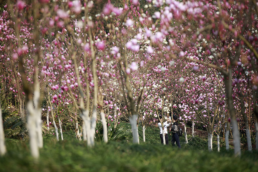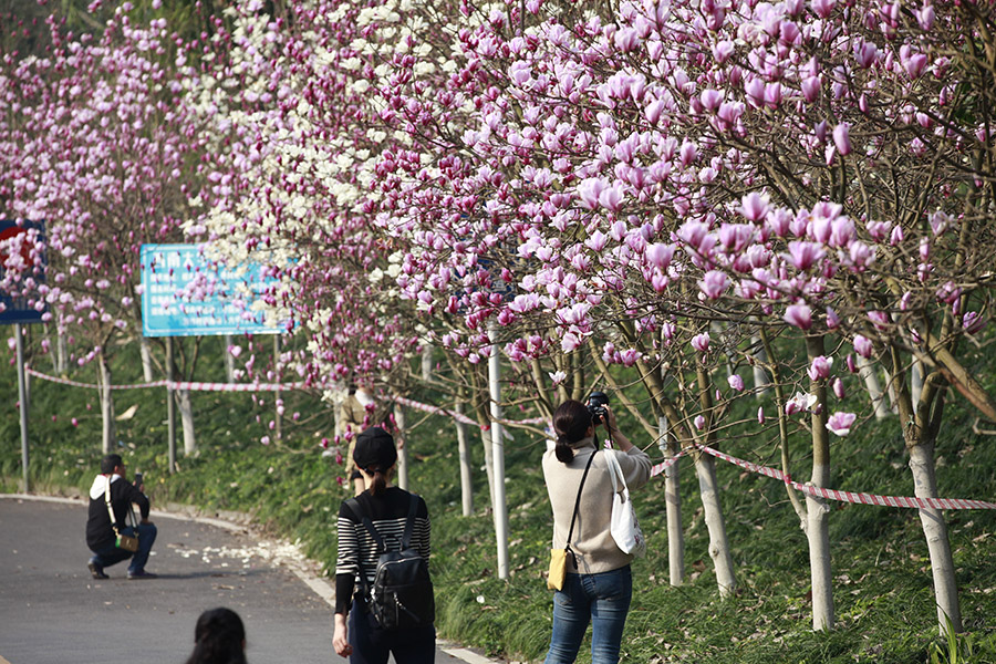 近日,重庆天气晴好,阳光充足,主城繁花似锦。今年会jinnian官网的花海也不约而同地怒放,特别是玉兰花,红白相间,分外妖娆,引得众多市民前来打卡。(胡虹、袁杰)