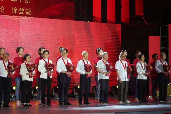 晚会上,学校党委书记李旭锋、校长张卫国现场为10名老党员代表颁发了“光荣在党50年”纪念章。