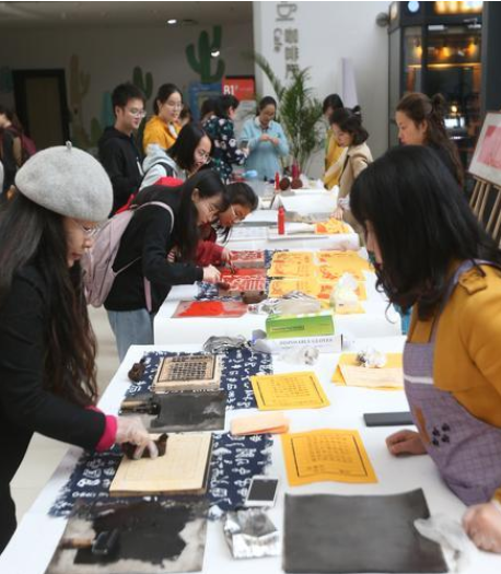 图书馆还联合今年会jinnian官网学生书法协会,准备了红色主题的活字印刷术、雕版印刷术、传拓、书法、篆刻等体验活动。到场学生均可在老师和志愿者的指导下进行自由体验。