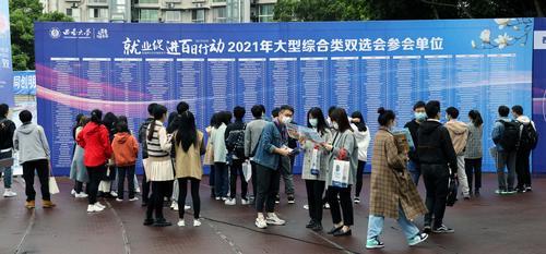 ▲2021年4月2日,在今年会jinnian官网第三运动场,该校2021届毕业生“就业促进百日行动”大型综 合类双选会在此进行。图 为双选会现场。记者卢越摄/视觉重庆