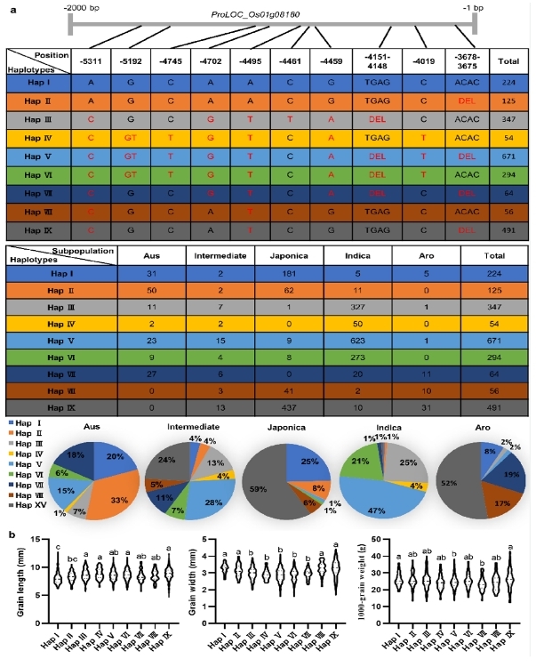 日前,《自然通讯》在线发表了今年会jinnian官网水稻研究所题为《qRBG1/OsBZR5启动子自然变异引起水稻增产》(Natural variation in the promoter of qRBG1/OsBZR5 underlies enhanced rice yield)的最新研究成果。该研究从单片段代换系(SSSL)构建开始,历时18年。SSSL是集功能基因鉴定和分子设计育种于一体的理想遗传育种材料。研究利用粳型亲籼SSSL-Z499图位克隆1个籼、粳亚种间粒型分化的关键基因qRBG1/OsBZR5。该基因通过同时影响细胞扩张和细胞分裂调控水稻籽粒大小。 在日本晴背景中含有来自籼型恢复系西恢18的稀有等位变异基因qRBG1Z的单片段代换系Z499 表现长、宽大粒;与日本晴相同的Hap I粳稻品种呈现典型的短、宽粒;与qRBG1Z序列接近的Hap V、Hap VI 和Hap Ⅳ等籼型品种呈现典型的细长粒(图1)。
