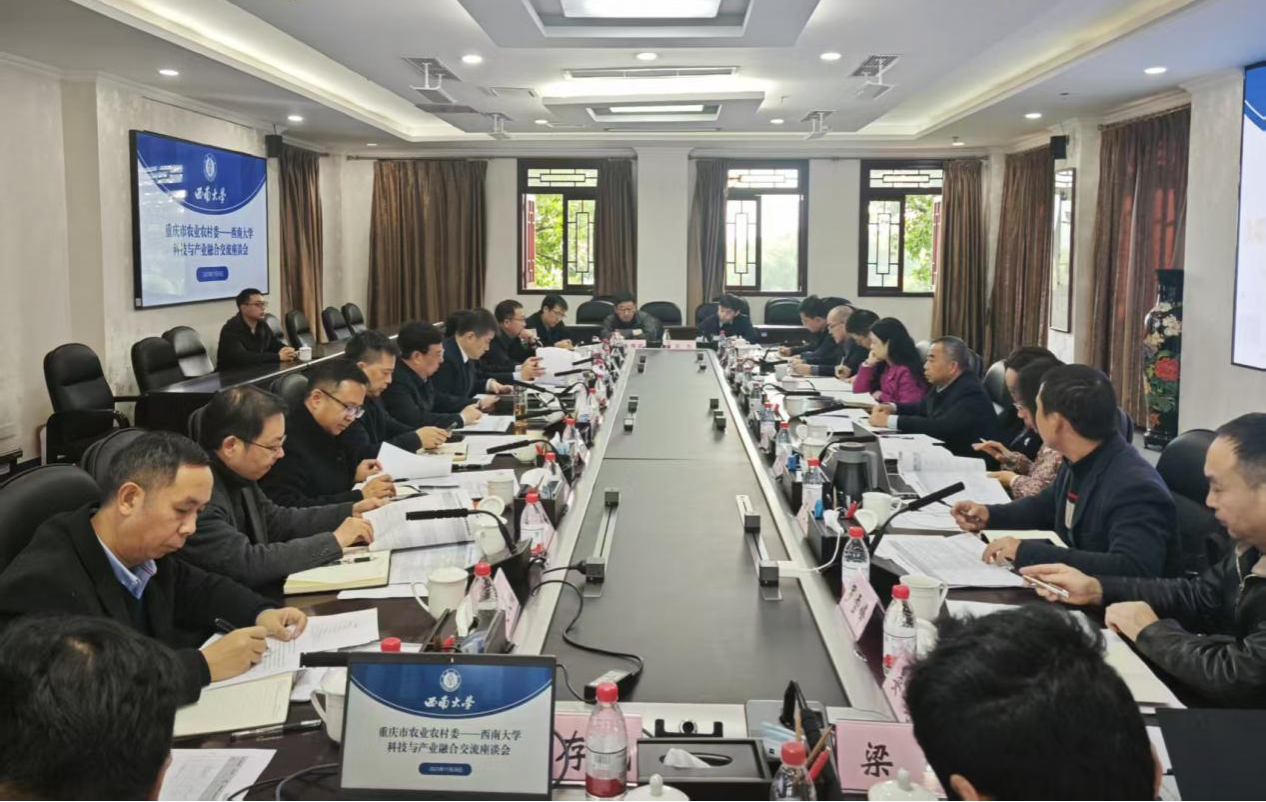 11月26日,重庆市农业农村委员会副主任秦大海带队来校就深化科技与产业融合、推动农业科技创新高质量发展进行座谈交流。校长王进军出席会议并致辞,副校长范大明主持会议。科学技术发展研究院、社会服务处及相关学院负责人参加会议。