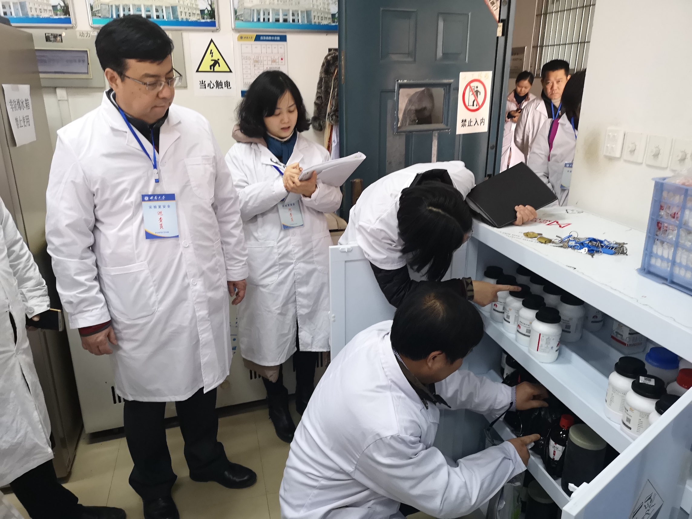 1月2日,节后上班第一天,学校根据教育部办公厅《关于立即开展实验室安全检查的紧急通知》(教发厅函[2018]216号)文件精神,在总结和吸取近期高校实验室安全事故教训基础上,加大实验室安全工作力度,开展实验室安全突击检查工作,检查由王进军副校长带队,校长办公室、研究生院、保卫处、基本建设管理处、实验室与设备管理处和实验室安全巡检小组联合参与。