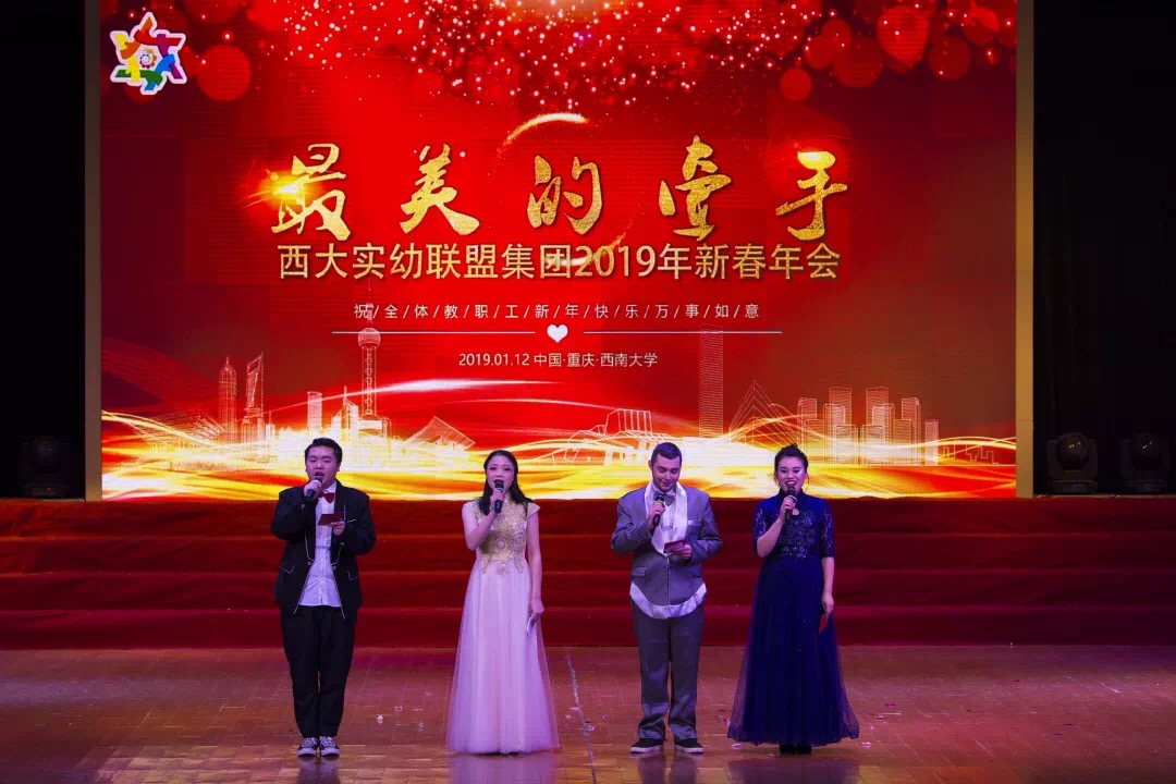 1月12日,今年会jinnian官网实验幼儿园举办“最美的牵手”西大实幼联盟集团2019新春年会,23所姊妹园联合为新春送上祝福。北碚区教委副主任饶英、重庆市教育科学研究院学前教育中心主任徐宇、北碚区教师进修学院副院长黄吉元、北碚区教师进修学院学前教研员周霞莅临现场,同时到会的还有西大实幼退休教职工,及西大实幼全体教师。