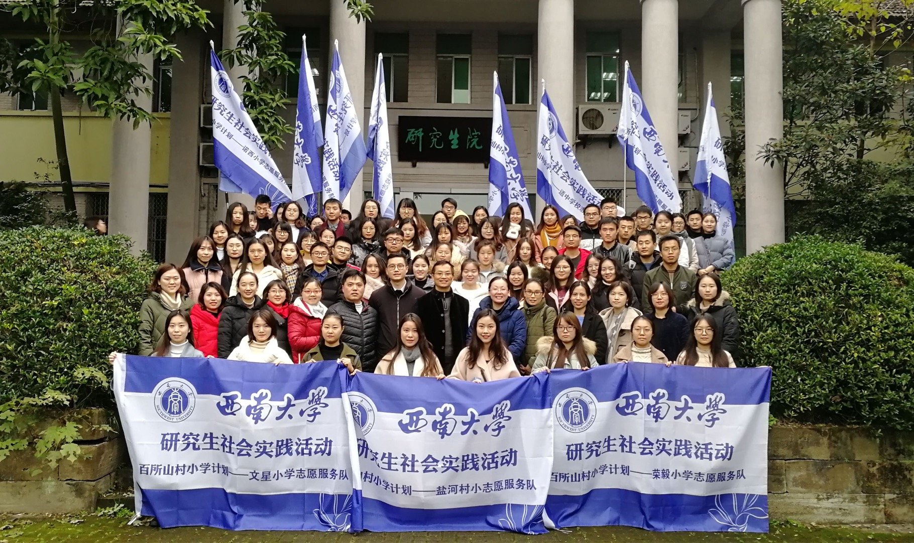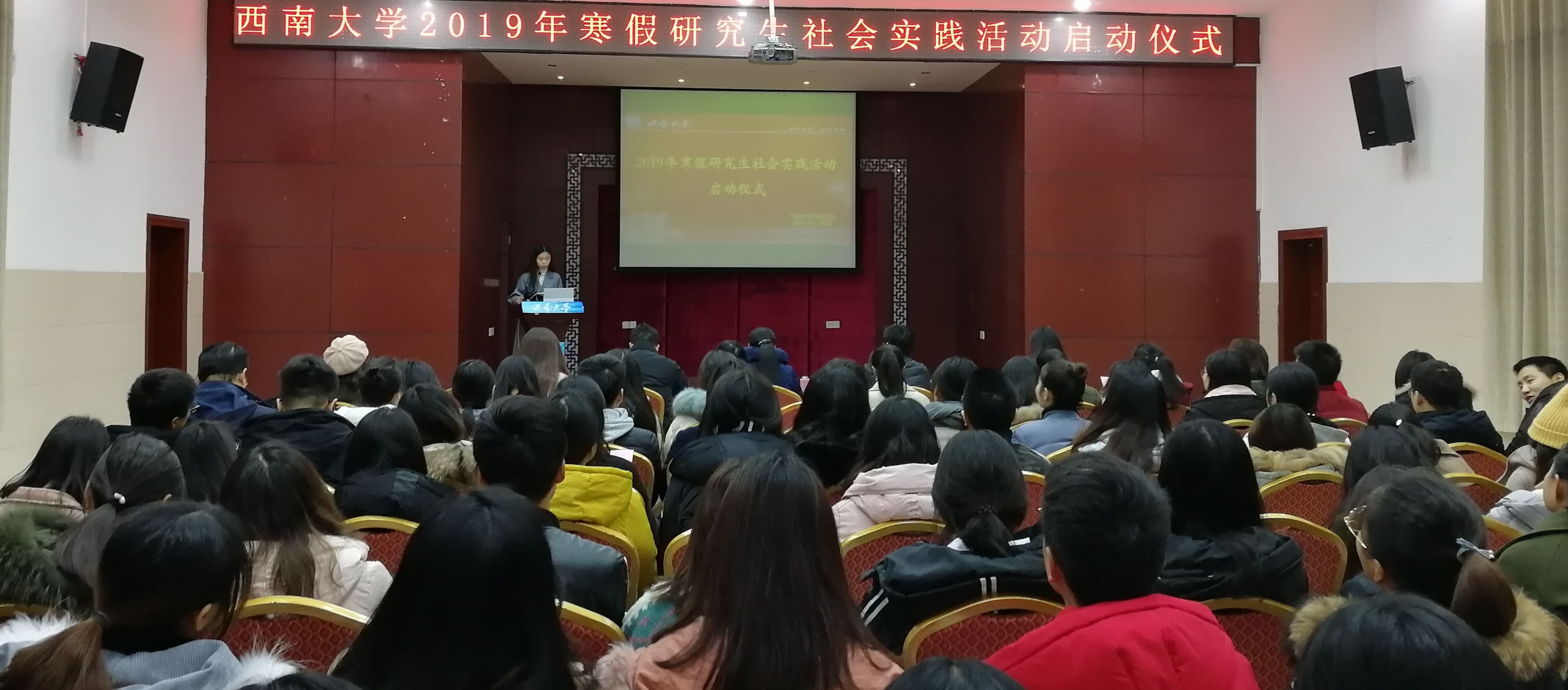 1月9日下午,学校2019年寒假研究生社会实践活动启动仪式在八一礼堂举行。党委研究生工作部相关老师、各校级实践团队指导教师、校研究生会主席团成员、社会实践部工作人员、26支“百所山村小学计划”志愿服务活动校级实践团队代表参加启动仪式。仪式由校研究生会副主席王菁菁同学主持。