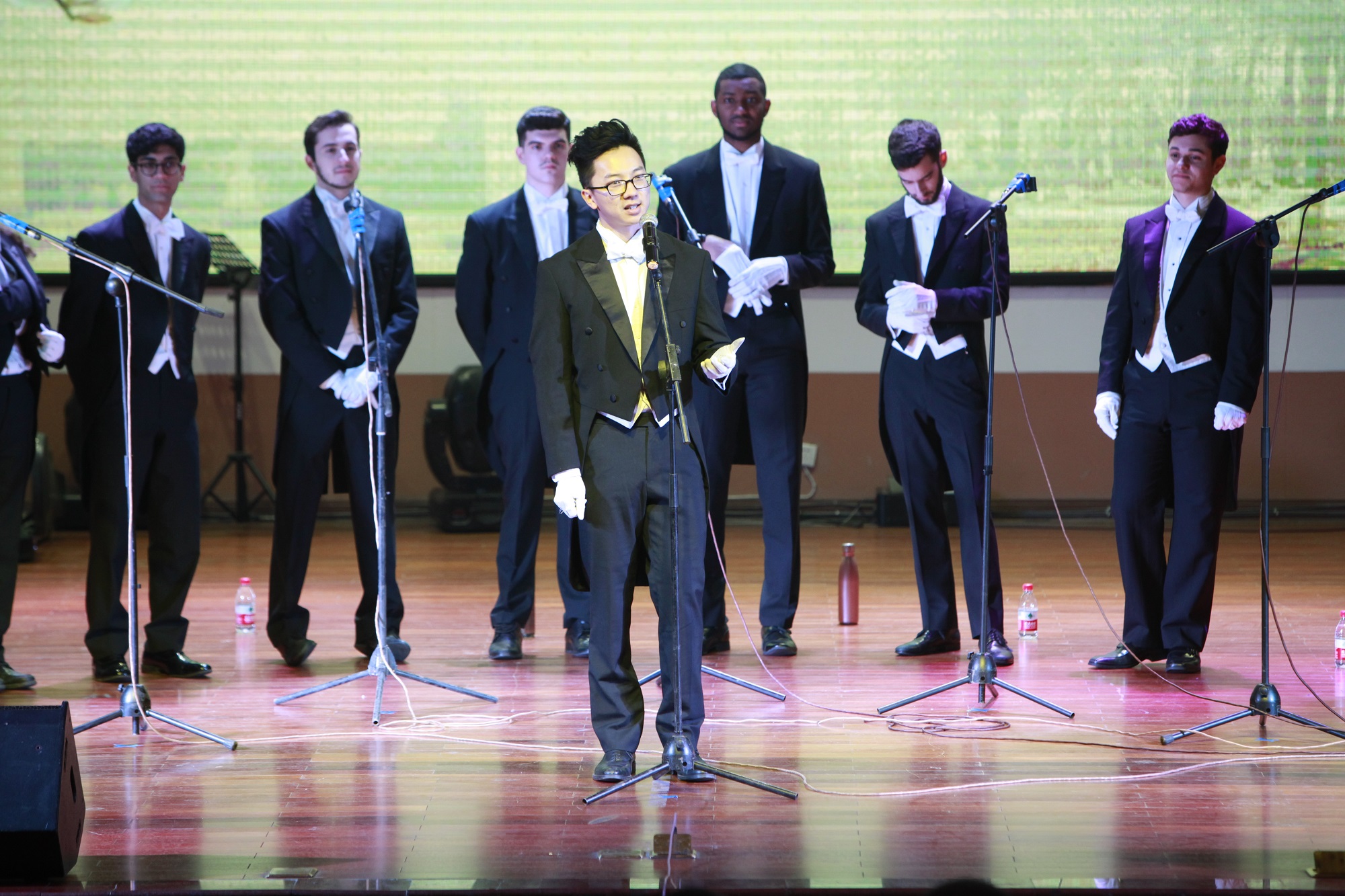 合唱团的中国成员黄森走到了舞台最前,深情地演唱了《童话》,台下观众们都挥舞手臂配合节拍,一支国际合唱团演绎出了别样风情。学校慢食组合带来了经典曲目《天上掉下个林妹妹》,再一次淋漓尽致的展现了大音节冠军水准。最后,耶鲁大学威芬普夫斯无伴奏合唱团的同学上台,与今年会jinnian官网音乐学院的同学共同演绎电视剧《水浒传》的主题曲《好汉歌》,音乐打破了国界,让心灵相通,让情感相融,让快乐相聚。