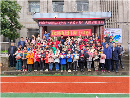 本次“芸香科特”党建示范服务团以柑桔研究所教工四支部党员为主体开展,活动当日,教工四支部赴龙河镇洞庄坪村长岭完小开展“助教启梦”志愿捐赠活动,并邀请柑桔研究所新聘博士、毕业于江南大学食品科学与工程专业的白俊英老师,为全体小学生们开展了一场精彩的“逐梦励志”演讲。