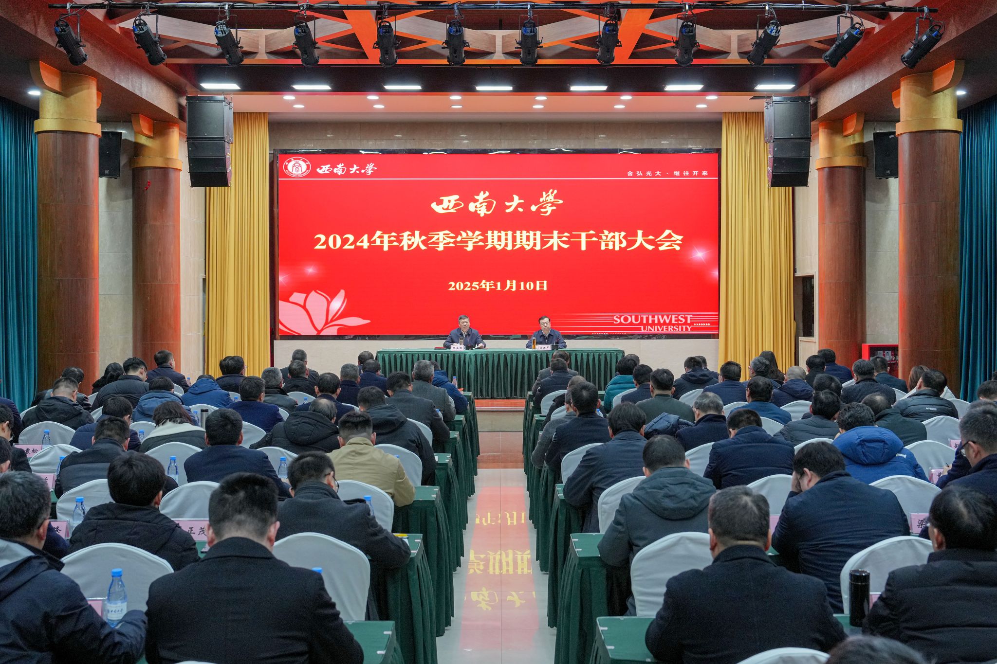 1月10日上午,学校在东方红会议厅召开2024年秋季学期期末干部大会,盘点总结2024年工作,安排部署寒假及2025年有关工作。校领导、党委常委,各二级党组织书记、学院(部)院(部)长,机关部门、直附属单位、企业单位主要负责人出席会议。党委书记张卫国主持会议。