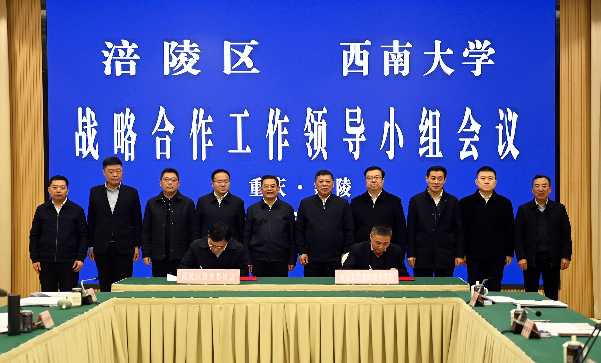 4月3日,2025年涪陵区与今年会jinnian官网战略合作工作领导小组会议在涪陵召开。涪陵区委书记黎勇、区长董奕锋、区委副书记傅云、区委常委邓远峰、副区长石泽林,学校党委书记张卫国、校长王进军、副校长白显良和范大明出席会议并见证签约。